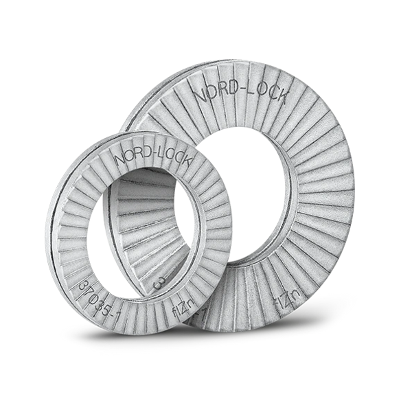 The Nord-Lock Original washers are high-performance mechanical fasteners designed to secure bolted joints exposed to severe vibration and dynamic loads. They use a unique wedge-locking technology, which relies on tension instead of friction to prevent bolt loosening. Each washer pair has cam faces on one side and radial teeth on the other. When the bolt is tightened, the radial teeth grip the mating surfaces, and the cam angle—being greater than the thread pitch—creates a wedge effect that prevents rotation.
